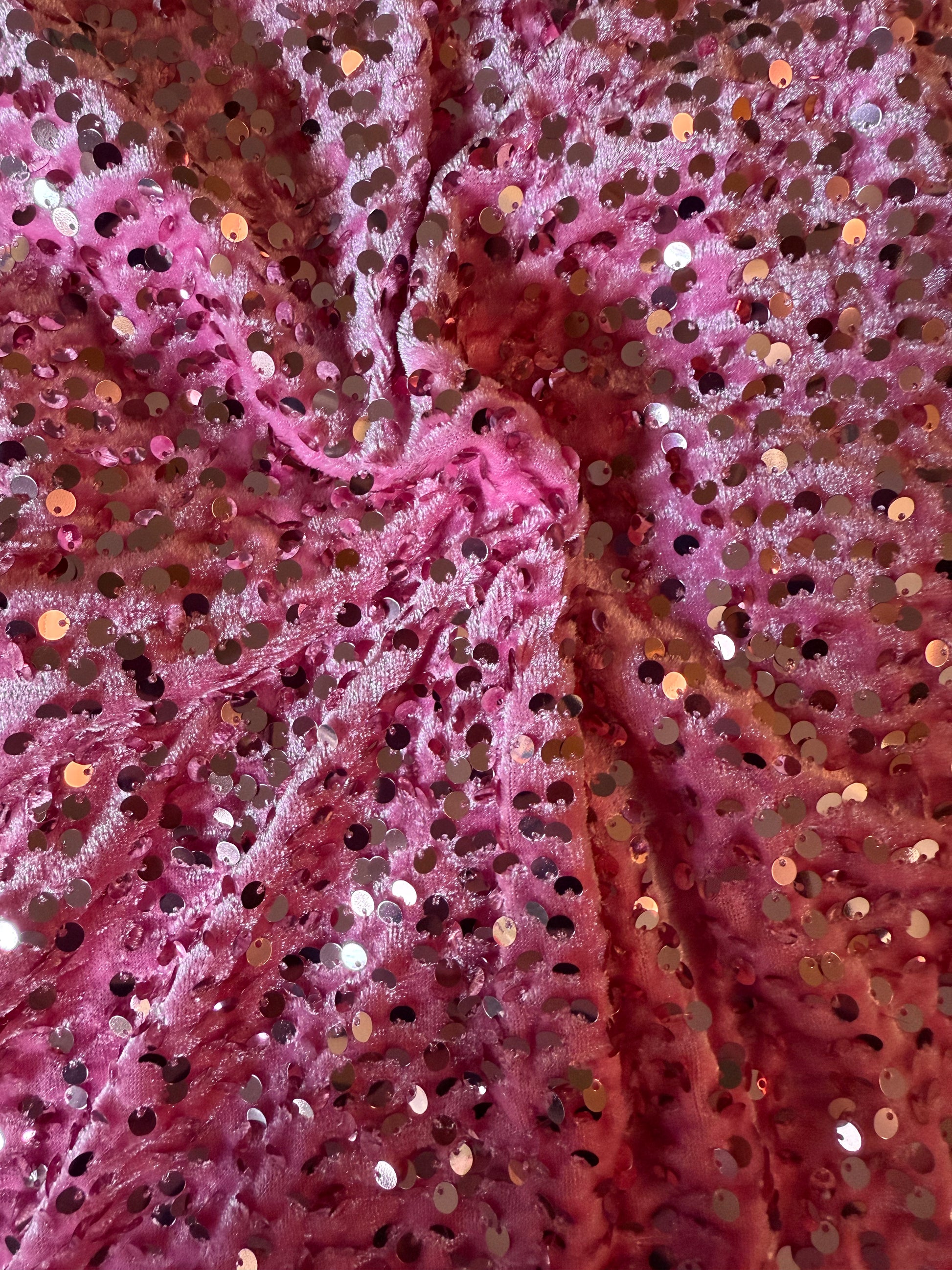 Sequin Velvet Stretch is a 4 way Stretch sequin with a velvet backing 180gsm … Amazing to work with, makes beautiful bows, and works great for clothing as well!